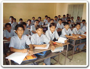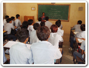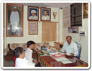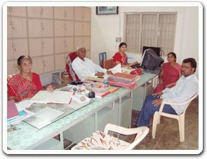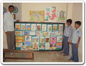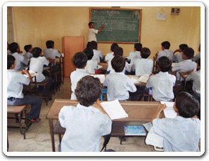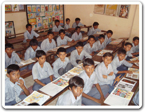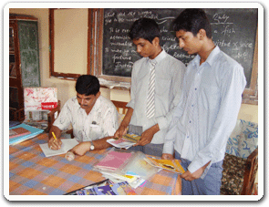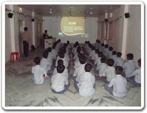 We have well equipped teaching staff room for 4 Teaching Staff with facilities like steel Wooden Tables, chairs, plastic chairs, wall clock, ceiling fan, tube light, wall peace, slogan board, leg wiper, dustbin, individual drawers & Cupboards etc. |